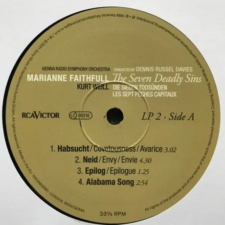 Marianne Faithfull - The Seven Deadly Sins (0194399269817) виниловая пластинка - этот товар вы можете купить в нашем интернет-магазине по цене 3180 руб. Цены, фото и описания представлены на карточке товара. Звоните по телефону 8(812)426-98-99 в Санкт-Петербурге.