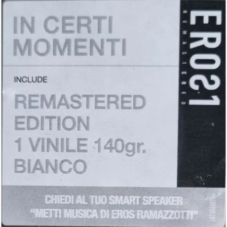 Итальянская версия альбома "In Certi Momenti" на белом виниле. Кампания EROS21 продолжится 26 ноября выпуском альбомов "Cuori Agitati", "In Certi Momenti", "Musica E" и "In ogni senso" на цветном виниле. Это четыре из первых пяти альбомов музыканта, которые легли в основу невероятно успешной карьеры Эроса Рамазотти. In certi momenti — третий студийный альбом Рамазотти, который был выпущен в 1987 году лейблом Bertelsmann Music Group. Диск возглавил ряд итальянских хит-парадов, а продажи альбома по всему миру в настоящее время составляют более 3,5 млн экземпляров.