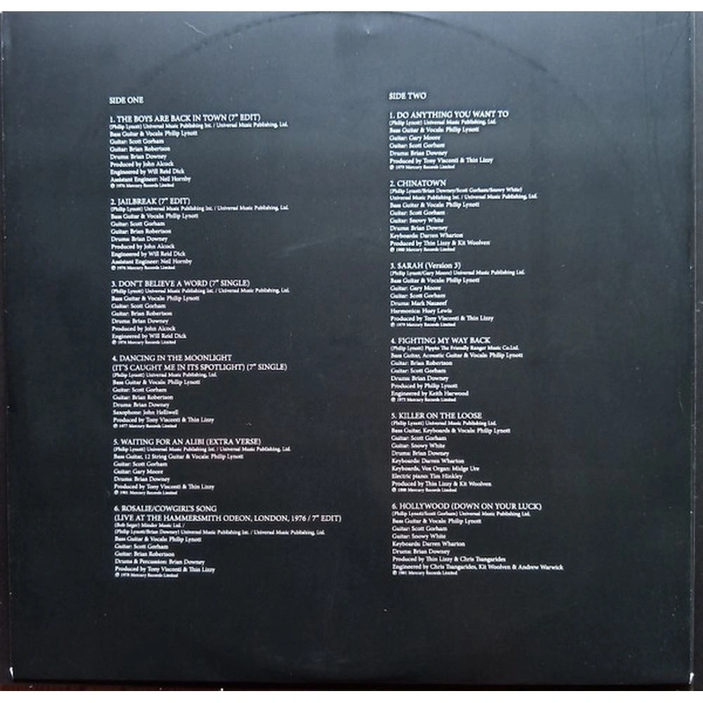 The Boys Are Back in Town, Jailbreak, Don't Believe A Word, Dancing in The Moonlight (It's Caught Me in Its Spotlight), Waiting for An Alibi, Rosalie (Live), Do Anything You Want To, Chinatown, Sarah (Version 3), Fighting My Way Back, Killer on The Loose, Hollywood (Down on Your Luck), Thunder and Lightning, Renegade, Still in Love with You, The Sun Goes Down, Whiskey in The Jar, Bad Reputation, The Rocker, Showdown, Cold Sweat, Wild One