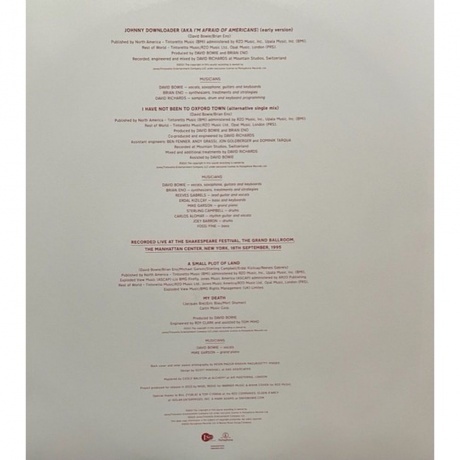 ДЭВИД БОУИ - RECORD STORE DAY 2022. ЛИМИТИРОВАННЫЕ ИЗДАНИЯ БУДУТ ВЫПУЩЕНЫ 22 АПРЕЛЯ, ВКЛЮЧАЯ РАНЕЕ НЕИЗДАННЫЕ ВЕРСИИ, ЖИВЫЕ ТРЕКИ И МИКСЫ. BRILLIANT ADVENTURE E.P. на виниле.. ISO Records и Parlophone Records с гордостью объявляют о грядущем релизе двух особенных мини-альбомов Дэвида Боуи, которые будут выпущены ограниченным тиражом на виниле и компакт-дисках, ко Дню музыкального магазина 2022 года, BRILLIANT ADVENTURE E.P. и TOY E.P. (YOU’VE GOT IT MADE WITH ALL THE TOYS). Оба содержат неизданные версии, концертные треки и миксы той эпохи, представленные в недавних бокс-сетах BRILLIANT ADVENTURE и TOY:BOX. BRILLIANT ADVENTURE E.P. содержит четыре неизданных трека эпохи альбома 1.OUTSIDE, «JOHNNY DOWNLOADER», ранняя версия «IM AFRAID OF AMERICANS», записанная во время сессий с Брайаном Ино для альбома и сведенная в ноябре 1994 года, но выпущенная на альбоме Боуи только в 1997 году, когда был выпущен EARTHLING, альтернативный сингл «I HAVE NOT BEEN TO OXFORD TOWN» и два трека: «A SMALL PLOT OF LAND» с 1.OUTSIDE и кавер Жака Бреля «MY DEATH» в исполнении Боуи и пианиста Майка Гарсона на сборе средств для York Public Theater at the Shakespeare Festival в Нью-Йорке 18 сентября 1995 года. BRILLIANT ADVENTURE EP будет доступен на 12-дюймовом виниле и CD. 10-дюймовый винил и компакт-диск TOY E.P. (YOUVE GOT IT MADE WITH ALL THE TOYS) содержит ранее не звучавший «SHADOW MAN» (VOCAL AND PIANO MIX), альтернативный урезанный микс трека из альбома TOY, а также неизданные концертные версии «I DIG EVERYTHING» и «THE LONDON BOYS», записанные на финальном разминочном шоу Гластонбери в Roseland Ballroom, Нью-Йорк, 19 июня 2000 года. Также содержит три трека «YOUVE GOT A HABIT OF LEAVING» (RADIO EDIT), «SILLY BOY BLUE» (ALTERNATIVE ENDING MIX) и «CANT HELP THINKING ABOUT ME» (LIVE MARK RADCLIFFE SHOW BBC RADIO 1 SESSION), ранее доступные только в виде стриминговых синглов, которые дебютируют на физическом носителе.