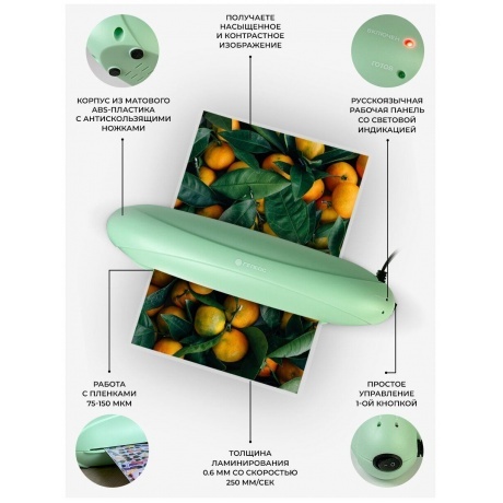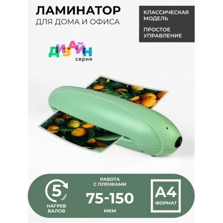 Описание товара Ламинатор ГЕЛЕОС ЛМ A4 Радуга зеленый (ЛМ-А4РЗ)
