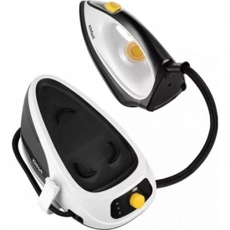 Паровая станция KT-9148 — это устройство, заменяющее утюг и отпариватель. Она состоит из утюга и подставки для утюга со съёмным резервуаром для воды. Прибор обеспечивает непрерывную подачу пара и справится с глажкой рубашки и брюк за 5 минут. С помощью паровой станции можно отпаривать вещи как вертикально, так и горизонтально. Благодаря мощной струе пара она справится даже с полотенцем, сложенным в несколько слоёв! Также КТ-9148 может работать как обычный утюг и проводить сухую глажку вещей. Регулятором на утюге настраивается t°C нагрева подошвы утюга до 210°C для обработки различных типов ткани. На ручке располагаются кнопки подачи пара и непрерывной подачи пара. На подставке имеется регулятор включения и индикация работы устройства. Отличительная особенность КТ-9148 от утюга - большой резервуар для воды (1.1 л). Вода из резервуара с помощью помпы подаётся по шлангу в испаритель утюга, где под воздействием высокой t°C превращается в пар и под давлением выходит из отверстий подошвы. Резервуар у паровой станции КТ-9148 съёмный. Он легко вынимается, наполняется водой и моется после использования. Фильтр, установленный в резервуаре для воды, предотвращает появление накипи в бойлере. Подошва утюга выполнена из алюминия с керамическим покрытием, поэтому она хорошо скользит и легко очищается. Такой утюг не сделает затяжек на одежде и лишних складок. На подставке расположены термостойкие вставки, благодаря которым на неё можно устанавливать горячий утюг. Также они служат для обеспечения его устойчивости. Для компактного хранения парового шланга предусмотрен специальный держатель на корпусе прибора. У КТ-9148 небольшой корпус, выполненный в стильном цветовом решении. Паровая станция не займёт много места во время работы и при хранении.