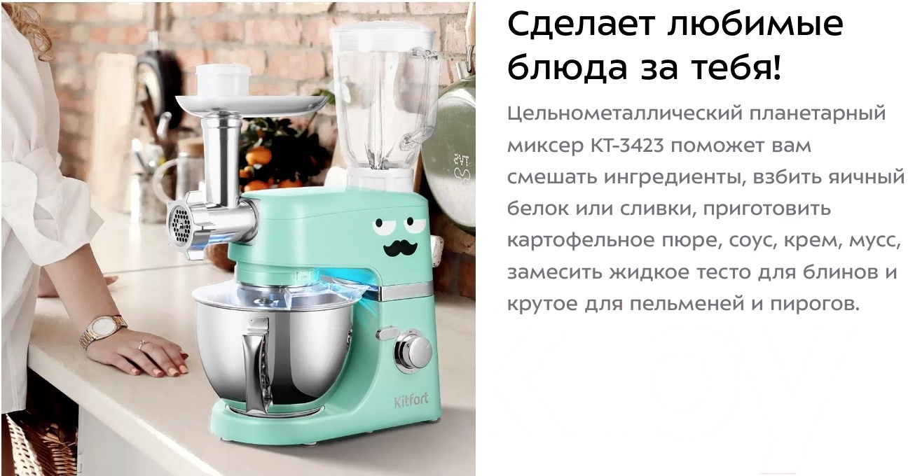 Отзывы о товаре Миксер планетарный цельнометаллический Kitfort КТ-3423-3 лазурный