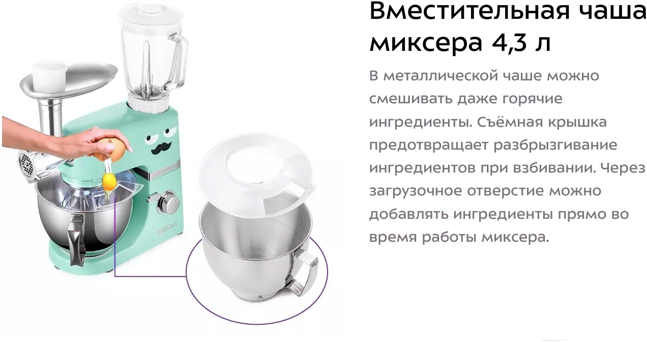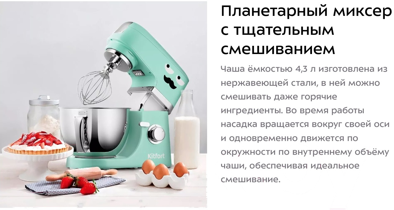 Описание товара Миксер планетарный цельнометаллический Kitfort КТ-3423-3 лазурный