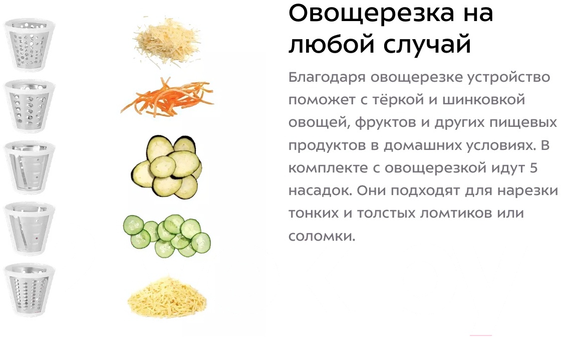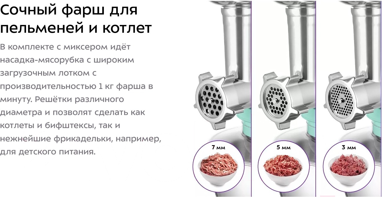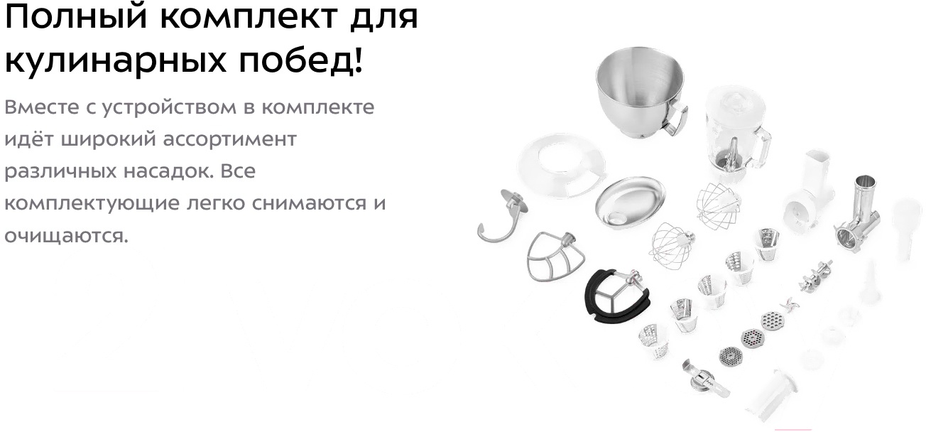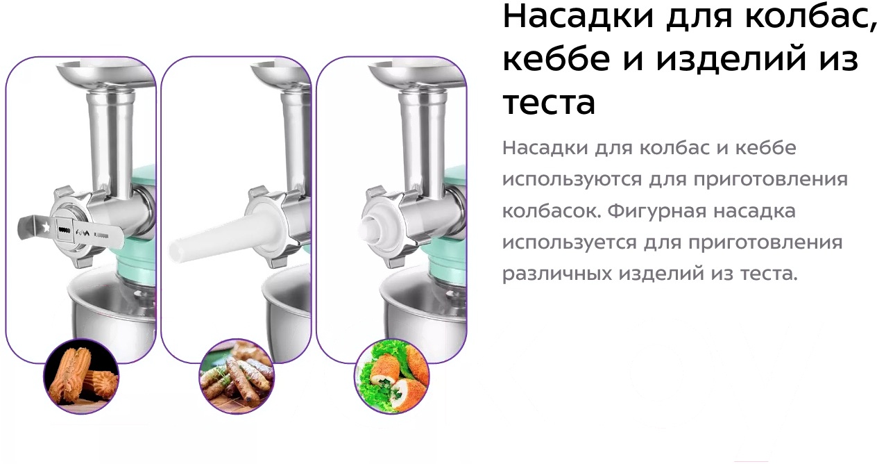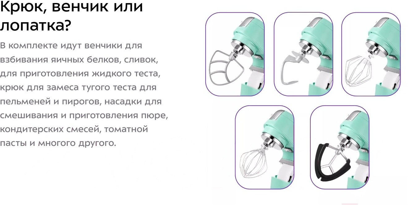 венчик для взбивания, для приготовления фарша, крючки для замешивания теста, насадка для приготовления пюре
