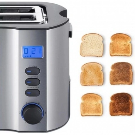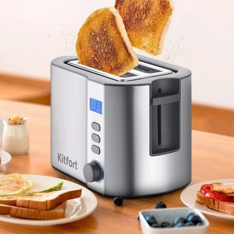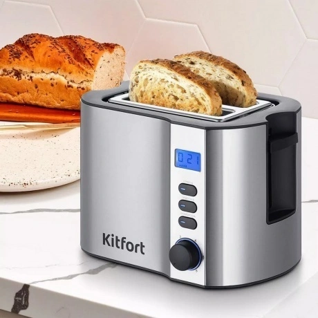 Тостер Kitfort КТ-6251 выполнен в серебристом корпусе из нержавеющей стали с пластиковыми вставками, показывающим обратный отсчет и другую индикацию дисплеем. 2 слота позволяют одновременно готовить 2 кусочка хлеба. Автоматическое центрирование гарантирует равномерную обжарку ломтиков. По окончании программы устройство автоматически выбрасывает готовые тосты.