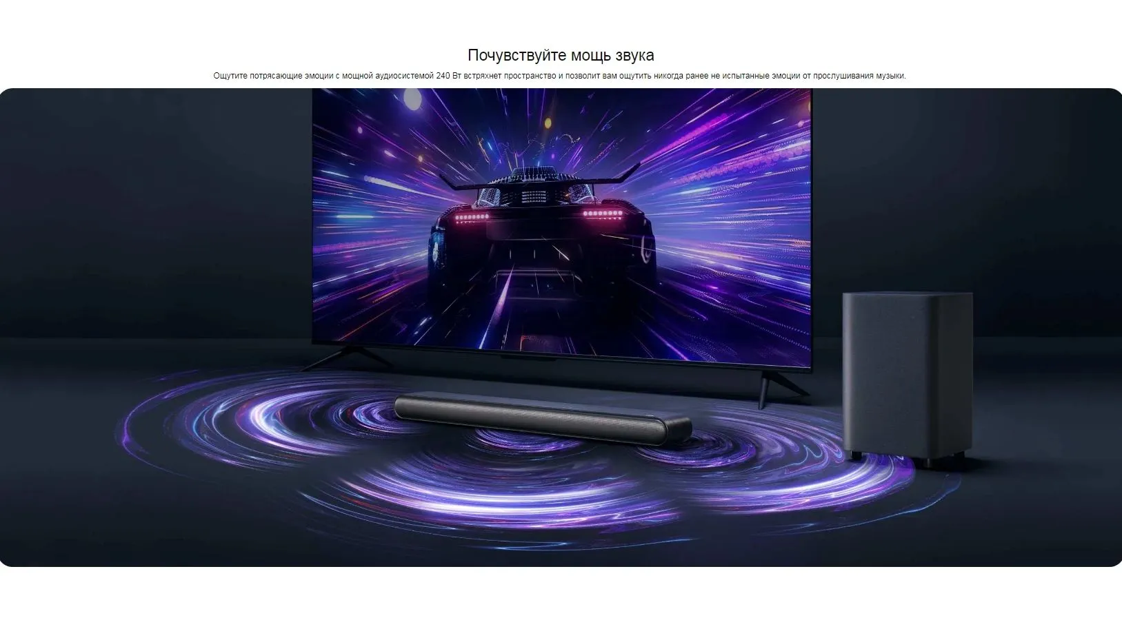 Саундбар TCL S643W, черный — система 3.1, обладающая суммарной мощностью 240 Вт, которая станет удачным дополнением к телевизору и позволит наслаждаться качественным аудио контентом. Поддерживаются форматы Dolby Audio и DTS Virtual Х. Основная панель работает в частотном диапазоне от 180 Гц до 20 кГц и транслирует детализированный, тщательно проработанный звук. Импеданс — 8 Ом. Для подключения к ТВ и присоединения дополнительных устройств система оснащена разъемом HDMI ARC, входом AUX, AUX VA, портом USB Тип A и оптическим входом. Сабвуфер беспроводной, подключается через Bluetooth версии 5.3. Колонка выдает глубокие, буквально ощутимые басы в частотном диапазоне от 40 Гц до 180 Гц, импеданс — 4 Ом. Саундбар можно использовать для прослушивания музыки со смартфона или другого совместимого девайса с поддержкой Bluetooth A2DP и/или AVRCP. Также звук можно воспроизводить с USB-накопителей (до 64 Гб в формате MP3). Элементы управления находятся на верхней стороне панели, кроме того, вводить настройки удобно через пульт ДУ. Можно переключаться между источниками входного сигнала, регулировать громкость, переключать треки, активировать различные предустановленные режимы. Среди них — «Ночной», «Усиление басов», «Усиление голоса», «Усиление объемного звучания» и другие.