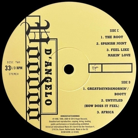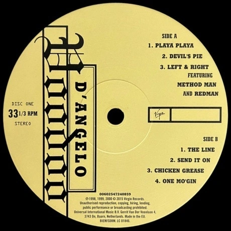 DAngelo – Voodoo (Reissue) LP«Voodoo» — второй студийный альбом американского певца, автора песен и мультиинструменталиста Д’Анджело, выпущенный 25 января 2000 года на лейбле Virgin Records. ДАнджело записал альбом в 1998 и 1999 годах в студии Electric Lady Studios в Нью-Йорке с обширным составом музыкантов, связанных с музыкальным коллективом Soulquarians. Спродюсированный в основном певцом, «Voodoo» отличается рыхлым фанковым звуком, основанном на груве, и показывает отход Ди от более традиционной структуры песен его дебютного альбома «Brown Sugar» (1995). Его тексты исследуют темы духовности, любви, сексуальности, взросления и отцовства. После активной рекламы и ожиданий публики альбом имел коммерческий успех и успех у критиков. Он дебютировал под номером один в Billboard 200 США, продав 320 000 копий за первую неделю, и провел в чарте 33 недели. Релиз был продвинут пятью синглами, в том числе хитом Untitled (How Does It Feel) , музыкальное видео которого привлекло внимание к ДАнджело и вызвало обширные споры. После выпуска «Voodoo» получил всеобщее признание музыкальных критиков. Многие издания назвали его одним из лучших альбомов года. С тех пор «Voodoo» рассматривается музыкальными журналистами как творческая веха жанра нео-соул на пике его развития. Было продано более 1.7 миллиона копий этого альбома в Соединенных Штатах. Релиз получил платиновый статус от Ассоциации звукозаписывающей индустрии Америки (риаа).