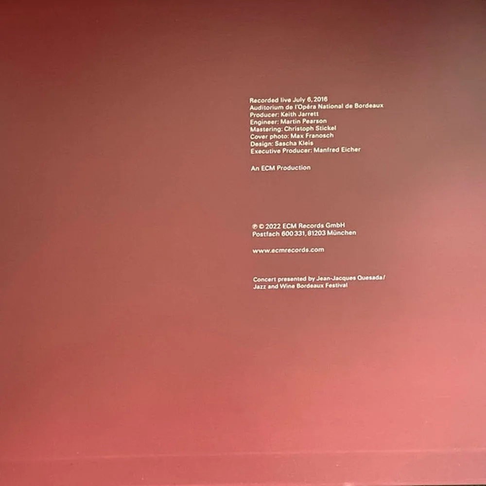 Концерт в Бордо – особый документ последнего европейского турне Кита Джарретта, каждый из сольных фортепианных концертов Джарретта в 2016 году имел свой ярко выраженный характер, а в Бордо на первый план выходит лирический импульс. В ходе этой импровизированной сюиты совершается множество тихих открытий, появляется трогательная свежесть музыки в целом, ощущение интимного общения. Рассматривая выступление в июле 2016 года, французская пресса говорила о намеках на Кёльнский концерт и Бремен-Лозанна в потоке событий, а расширенные части Бордо заманчиво красивы. Нежные песни звучат из воздуха, «пробуждая сообщество слушателей на грани тишины», как выразилась газета «Монд», «осознание времени вдали от шума и усталости мира».