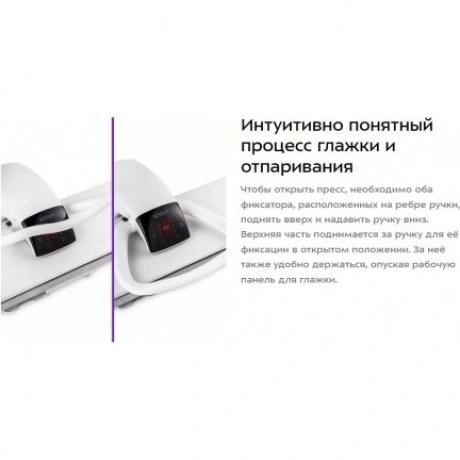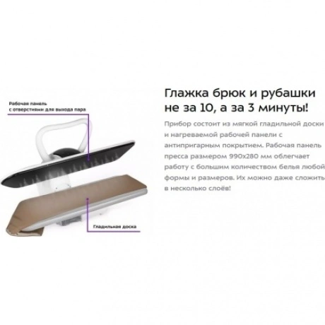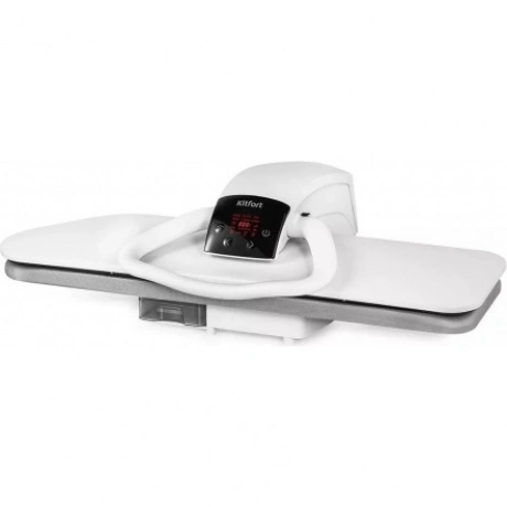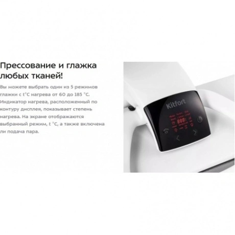 Гладильный пресс Kitfort KT-2607 выравнивает складки на текстильных изделиях за счет усиленного прессования с давлением около 50 кг и подачи пара. В конструкции прибора применяются мягкая гладильная доска и нагреваемая панель с антипригарным покрытием. Рабочая поверхность с размерами 990х280 ми упрощает уход за постельным бельем, шторами, брюками и другими изделиями. Пар подается автоматически из отверстий в верхней части прибора, когда она опускается. Эргономичные ручки-фиксаторы с боковых сторон отличаются удобством в пользовании. Панель управления с дисплеем позволяет установить один из 5 режимов с температурой от 60 до 185 °С. Встроенный резервуар для наполнения водой обладает емкостью 0.7 л. Специальный фильтр снижения жесткости воды помогает предотвратить появление накипи. Чехол на гладильной доске пресса Kitfort KT-2607 можно снимать и стирать.