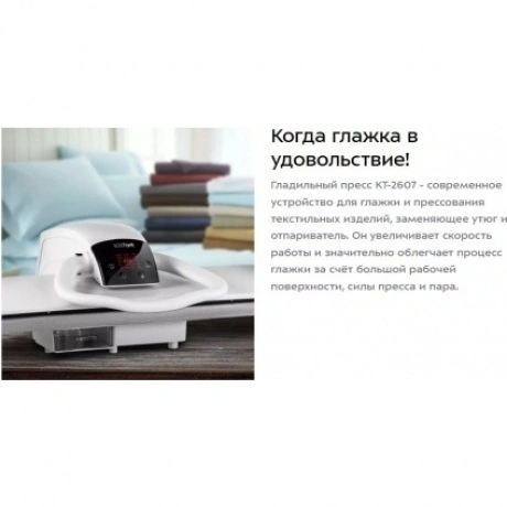 Гладильный пресс Kitfort КТ-2607 - по цене 32051 руб. в Санкт-Петербурге. Приобрести товар можно в интернет-магазине КотоФото на сайте, либо по телефону 8(812)426-98-99 в Санкт-Петербурге. Информация о характеристиках и описании указана в карточке товара.
