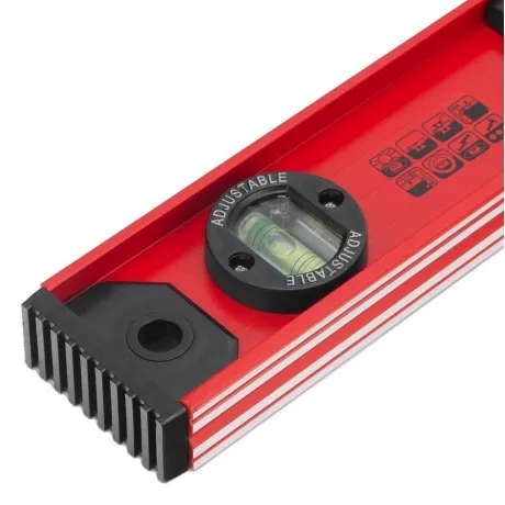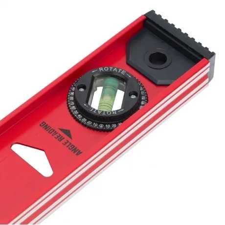 Усиленный алюминиевый уровень MATRIX Рельс широко используется для определения отклонений от вертикали, горизонтали и других углов на обширных поверхностях. Инструмент обладает повышенным рабочим ресурсом, так как его корпус полностью изготовлен из устойчивого к коррозии материала алюминия и имеет жесткую конструкцию из двутаврового профиля.