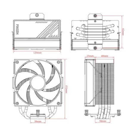 Система охлаждения для ЦПУ ID-COOLING FROZN A410 комплектуется вентилятором размером 120x120 мм, рассеивающим тепло. Предусмотрено посадочное место для еще одного вентилятора такой же размерности с питанием от интерфейса 4-pin. Вентилятор с управлением оборотами через ШИМ может вращаться со скоростью от 500 до 2000 об/мин.