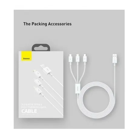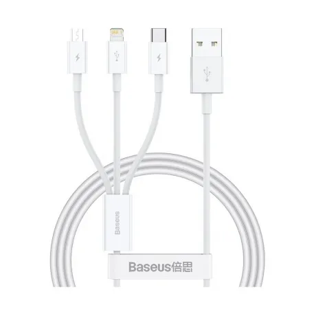 Кабель Baseus Superior Series Fast Charging Data Cable USB to M+L+C 3.5A 1m Stellar White (P10320105221-00) - это надежный и удобный кабель, который обеспечивает быструю зарядку и передачу данных. Он поддерживает разъемы Micro + iP + Type-C, что позволяет использовать его с различными устройствами. Кабель изготовлен из АБС и ТПЭ, что делает его прочным и долговечным. Он также поддерживает быструю зарядку до 3.5 А и передачу данных со скоростью до 480 Мбит/с. Разъемы устройства включают MicroUSB, Lightning и USB Type-C, а разъем подключения - USB Type-A. Кабель Baseus P10320105221-00 Superior Series Fast Charging Data Cable USB to M+L+C 3.5A - это надежный и удобный кабель, который обеспечивает быструю зарядку и передачу данных.