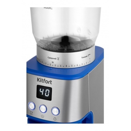Кофемолка электрическая Kitfort КТ-7266 оснащена мельницей из нержавеющей стали, которая не вносит изменений во вкусовые свойства зерен. Таймер выключает прибор по окончании установленного временного интервала. Регулировка степени помола и доступ к остальным параметрам открывается через кнопочную панель управления. За раз Kitfort КТ-7266 измельчает до 100 г зерен. Съемный механизм упрощает очистку резервуаров. При отсутствии контейнера для зерен срабатывает защитная технология, не позволяющая включить устройство. При подключении к сети используется 0.7-метровый кабель. Прорезиненные ножки гарантируют устойчивое положение на любой поверхности.