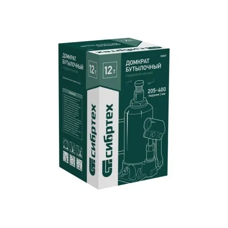 Описание товара Домкрат гидравлический бутылочный, 12 т, 205-400 мм Сибртех