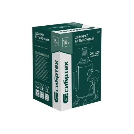 Домкрат гидравлический бутылочный Сибртех 50808 предназначен для подъема грузов массой до 16 т на высоту от 205 до 400 мм. Не требует больших усилий от пользователя и значительно облегчает рабочий процесс. Домкрат будет полезен при проведении техобслуживания машины в автосервисе или гараже.