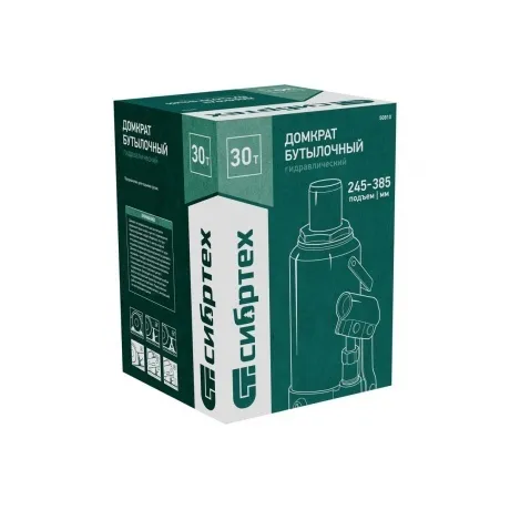 Описание товара Домкрат гидравлический бутылочный, 30 т, 245-385 мм Сибртех