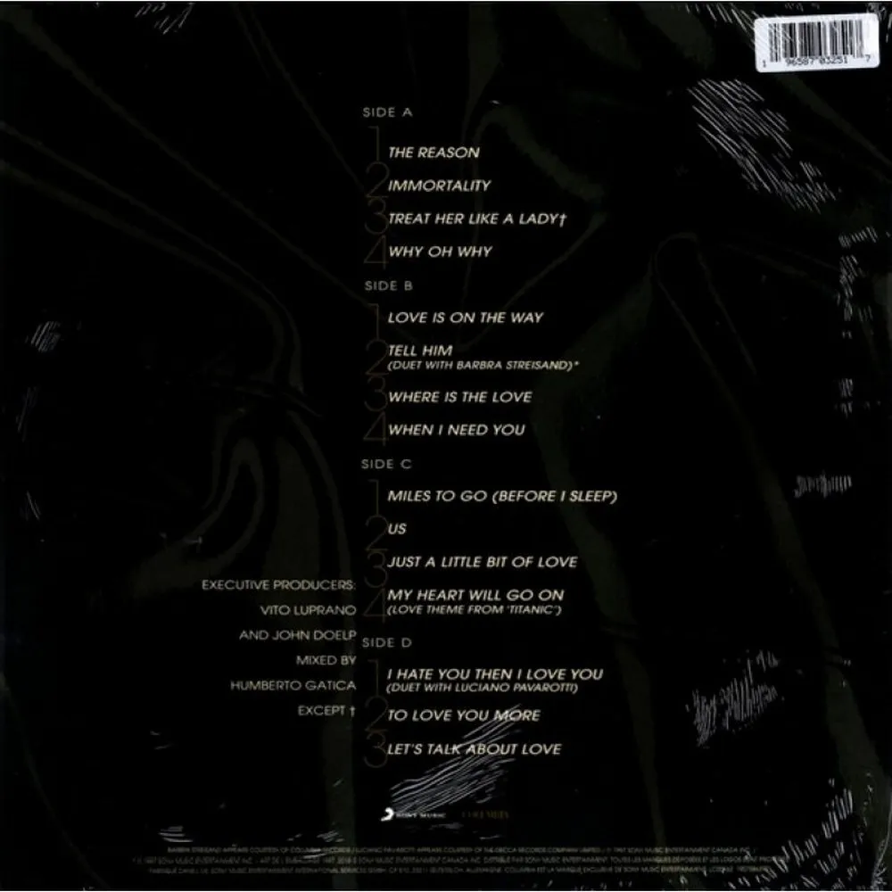 The Reason, Immortality, Treat Her Like a Lady, Why Oh Why, Love Is on the Way, Tell Him (Duet with Barbra Streisand), Where Is the Love, When I Need You, Miles to Go (Before I Sleep), Us, Just a Little Bit of Love, My Heart Will Go On, I Hate You Then I Love You (Duet with Luciano Pavarotti), To Love You More, Let's Talk About Love