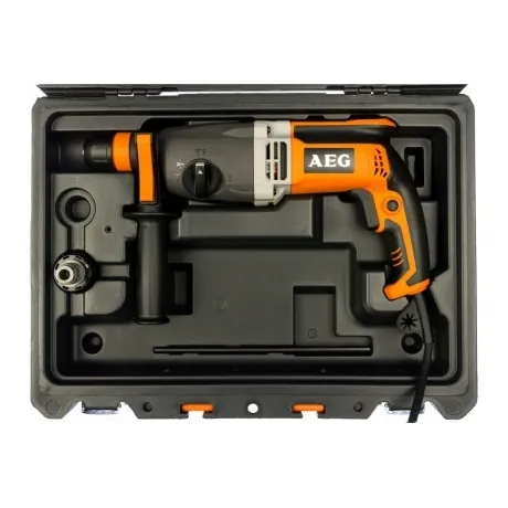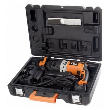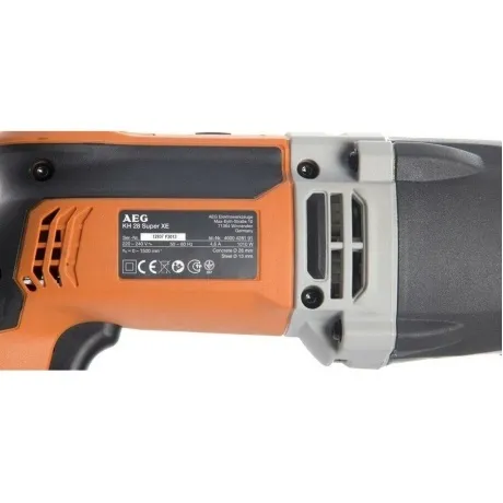 Перфоратор AEG KH 28 Super XE – надежный рассчитанный на использование на профессиональном уровне инструмент. Эта модель превосходно справляется с решением задач по долблению, бурению и сверлению, что позволяет эффективно применять ее в различных ситуациях. Мощность двигателя у предлагаемой техники составляет 1010 Вт. Диаметр выполняемых отверстий для дерева у нее имеет величину 30 мм, для бетона 28 мм, для стали 13 мм. Количество оборотов и ударов за минуту при эксплуатации рассматриваемого агрегата можно регулировать исходя из производимых работ. Тип патрона у него sds-plus.