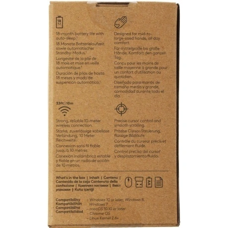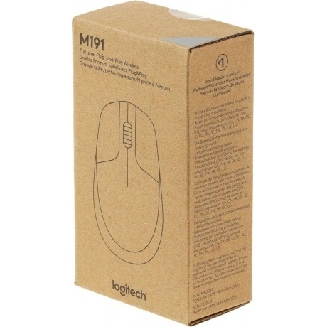 Беспроводная мышь Logitech M191 представлена в черном цвете и имеет максимальное разрешение датчика в 1000 DPI. Мышь имеет симметричную форму, поэтому ее будет удобно использовать как правшам, так и левшам. Работает от пальчиковой (AA) батарейки.