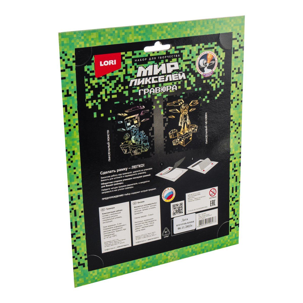Набор для творчества Lori Гравюра Мир пикселей Пиксельный монстр ГРИ-001 способствует развитию творческого потенциала, воспитывает усидчивость и терпение. Гравюра представляет собой многослойное панно, покрытое чёрной краской, на которое нанесён контур рисунка. Техника создания гравюры увлекательна и достаточно проста. Необходимо лишь взять штихель – особый скребок, входящий в состав набора, и процарапать рисунок гравюры. Работа с гравюрой развивает усидчивость, внимательность и образное мышление.