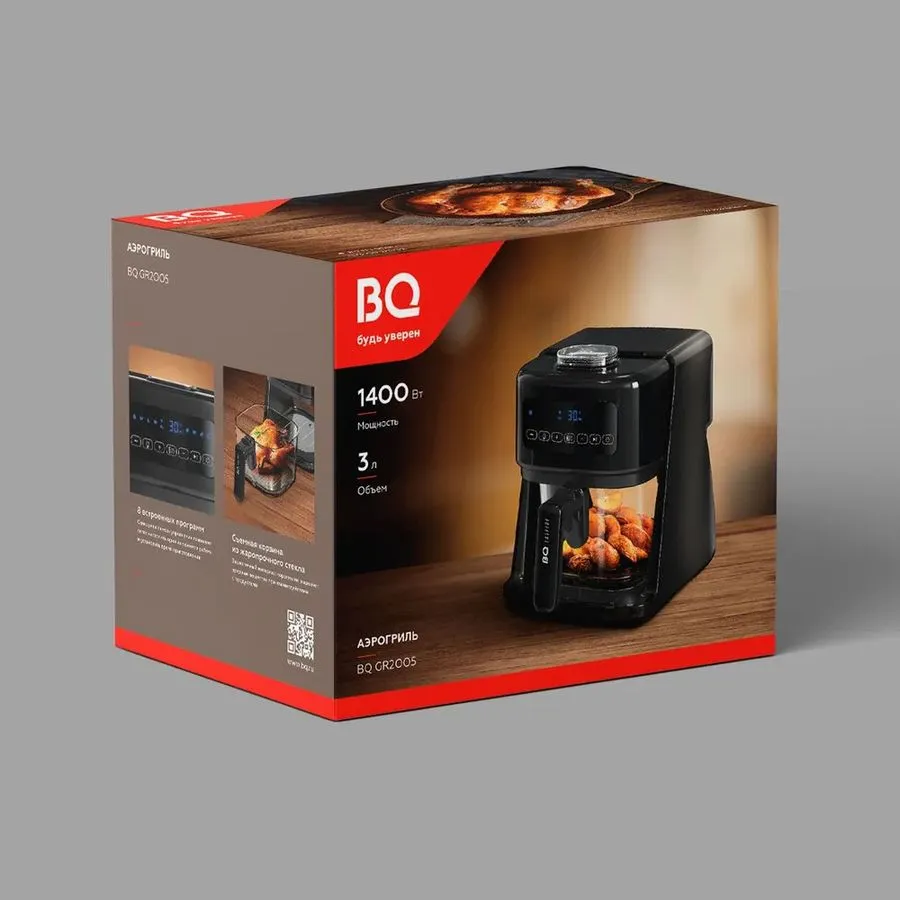 Аэрогриль электрический BQ GR2005 идеальный способ готовить дома здоровую и полезную пищу, как для одного, так и для всей семьи. К основным преимуществам устройства относятся приготовление без использования масла, делающее пищу более здоровой и менее жирной, корзина объемом 3 л, которая позволит готовить вкусные и полезные блюда для большой компании, а также 8 автоматических режимов, точно рассчитанных для приготовления определенных блюд. LED экран с сенсорным управлением позволит легко и быстро выбрать нужный вам режим, а смотровое окно дадут возможность контролировать процесс готовки. Аэрогриль обладает инновационной системой циркуляции воздуха, что обеспечивает качественное приготовление блюд со всех сторон и исключает любую возможность пригорания. Кроме того, блюда, приготовленные таким методом, сохраняют больше полезных веществ, а высокая мощность прибора гарантирует скорость и эффективность готовки. Еще одно преимущество аэрогриля его легкость в использовании и уходе. Устройство изготовлено из качественных материалов, имеет прорезиненные ножки и съемный лоток для жира, а металлический поднос подходит для мойки в посудомоечной машине. Кроме того, прибор имеет защиту от перегрева и автоматическое отключение. Аэрогриль BQ GR2005 станет прекрасным помощником на кухне, позволит сэкономить время и приготовить вкусные и полезные блюда для всей семьи.