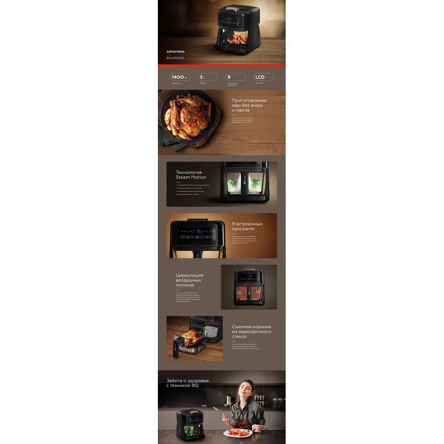 Описание товара Аэрогриль BQ GR2005 Black