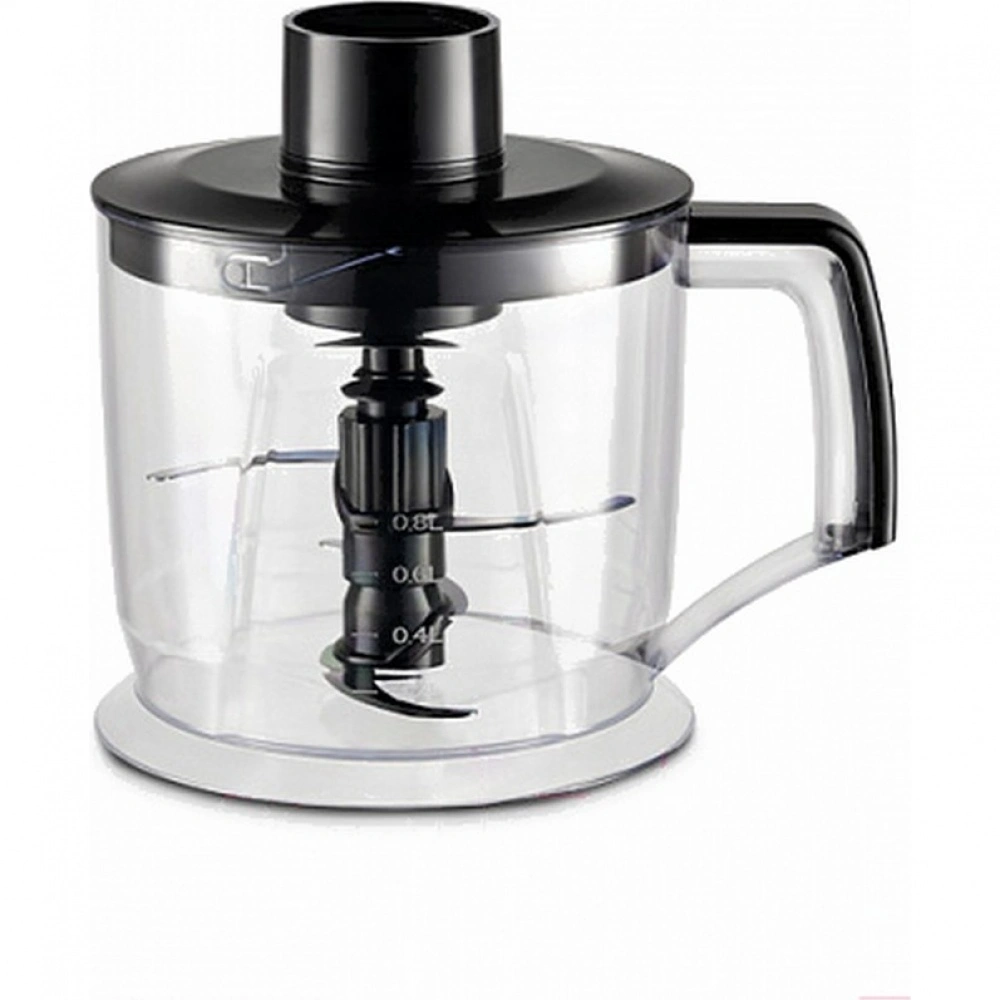 Устройство оснащено двумя сменными насадками, которые позволяют выбрать оптимальный режим для вашего блюда. Чаша измельчителя выполнена из прочного пластика и имеет объем 0,6 литра, идеально подходящий для небольших порций. Металлические ножи обеспечивают тщательное измельчение продуктов, гарантируя безупречный результат каждый раз.