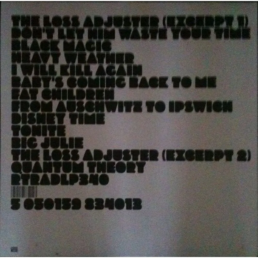The Loss Adjuster (Excerpt 1), Don't Let Him Waste Your Time, Black Magic, Heavy Weather, I Will Kill Again, Baby's Coming Back To Me, Fat Children, From Auschwitz To Ipswich, Disney Time, Tonite, Big Julie, The Loss Adjuster (Excerpt 2), Quantum Theory, Cunts Are Still Running The World