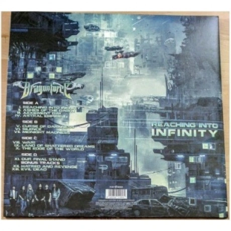 «Reaching Into Infinity» — седьмой студийный альбом Dragonforce, вышедший в мае 2017 года. Продюсером альбома стал Йенс Богрен, который ранее работал с Opeth, The Devin Townsend Project, Amon Amarth, Katatonia, Soilwork и Symphony X. Издание на двойном виниле с lдвумя бонус-треками. Dragonforce были основаны в 1999 году и представляют собой международный альянс самых лучших исполнителей. Это одна из немногих групп, участники которой являются представителями 6 стран: Украины (Вадим Пружанов), Новой Зеландии (Сэм Тотман), Южной Африки (Зиппи Терт), Франции (Фредерик Леклер), Великобритании (Дэйв Макинтош) и Китая (Герман Ли). В последние десять лет они без устали доказывали, что виртуозная игра и продвинутые навыки композиции могут привлечь фэнов рока по всему миру. На этом пути группа дала немало аншлаговых концертов в качестве хэдлайнера в различных уголках света, в том числе таких экзотических, как Китай, Гавайи, Новая Зеландия, Россия и Колумбия. Общие продажи альбомов Dragonforce превысили отметку два миллиона экземпляров по всему миру.