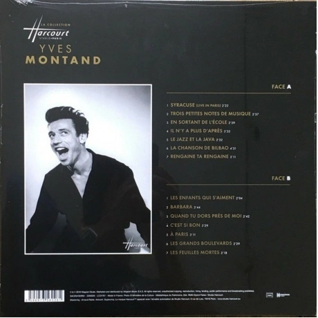 Виниловая пластинка Yves Montand La Collection Harcourt - cборник лучших песен французского певца Ив Монтана выпущенный в 2018 году французским лейблом Wagram. На обложке представлена фотография Ив Монтана, сделанная в легендарной фотостудии Аркур, Париж. Studio Harcourt — одна из старейших и известнейших фотостудий в мире. Ее история впечатляет: студия существует более 90 лет и все эти годы притягивает выдающихся деятелей культуры, звезд кинематографа и видных политиков.«Если ты не снимался в Аркур, значит, ты еще не суперзвезда!». Эта расхожая среди актеров поговорка точно показывает место легендарной парижской фотостудии в восприятии известных мира сего. Знаменитостей, снятых в этой студии, можно перечислять бесконечно — архив Аркур является настоящей «визуальной памятью» XX-го столетия. Сегодня на счету студии, впервые включившей прожекторы 15 января 1934 года, портреты более 2000 звезд, блистающих в разных областях, от кино до спорта, и около полумиллиона «обычных людей», способных позволить себе роскошь фотосессии у Аркур. Фирменный «le style Harcourt» весьма узнаваем: черно-белые студийные портреты с потрясающей игрой света и тени. Фотографы Аркур не пытаются решить свою задачу, полагаясь на мегапиксели или фотошоп — магия образов заключается в мастерской работе с ракурсом и освещением. Ив Монтан (фр. Yves Montand настоящее имя Иво Ливи ) — французский певец-шансонье и актёр.