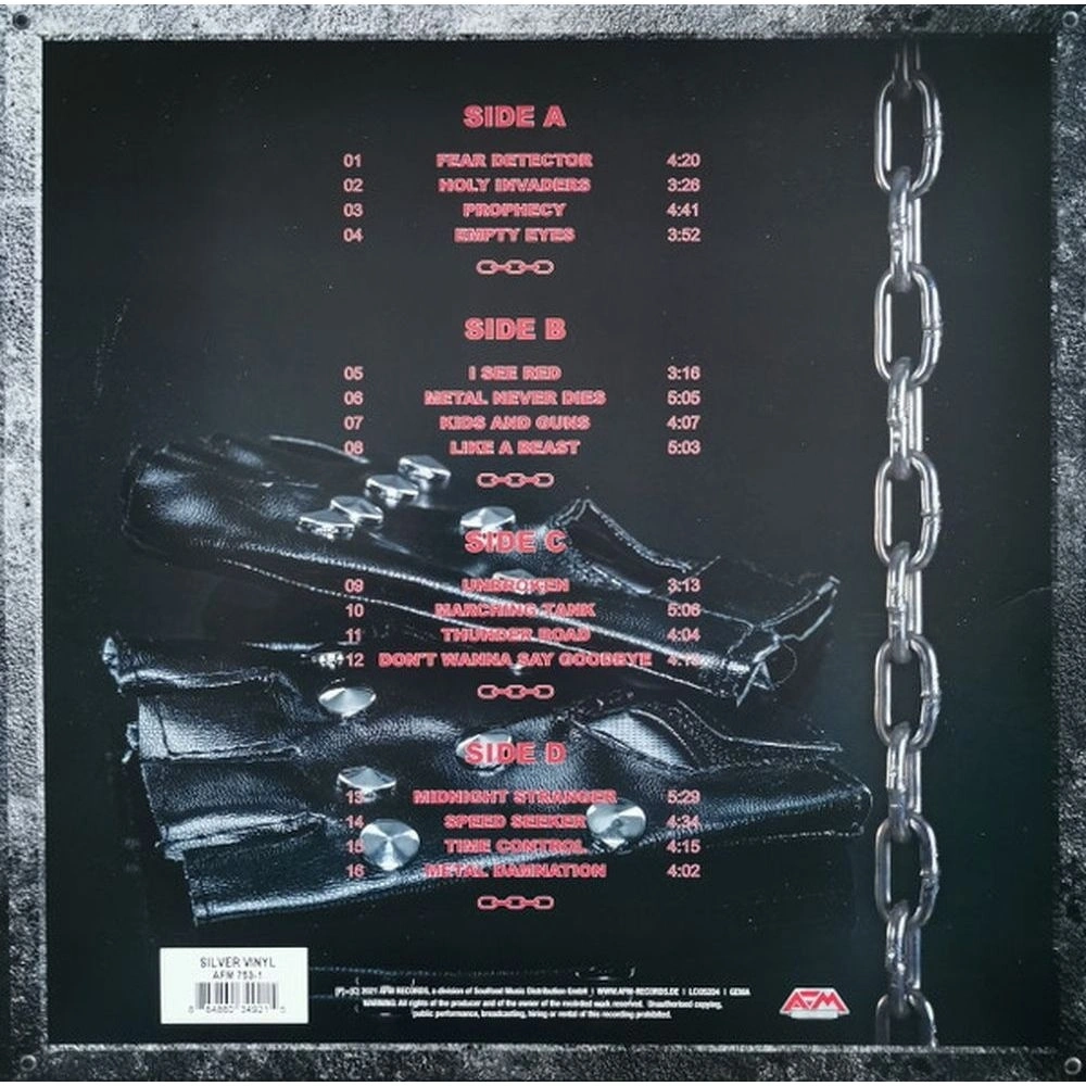 Лицензионное издание, выпущенное на виниле. В альбом вошли следующие композиции: Fear Detector, Holy Invaders, Prophecy, Empty Eyes, I See Red, Metal Never Dies, Kids And Guns, Like A Beast, Unbroken, Marching Tank, Thunder Road, Don?t Wanna Say Goodbye, Midnight Stranger, Speed Seeker, Time Control, Metal Damnation