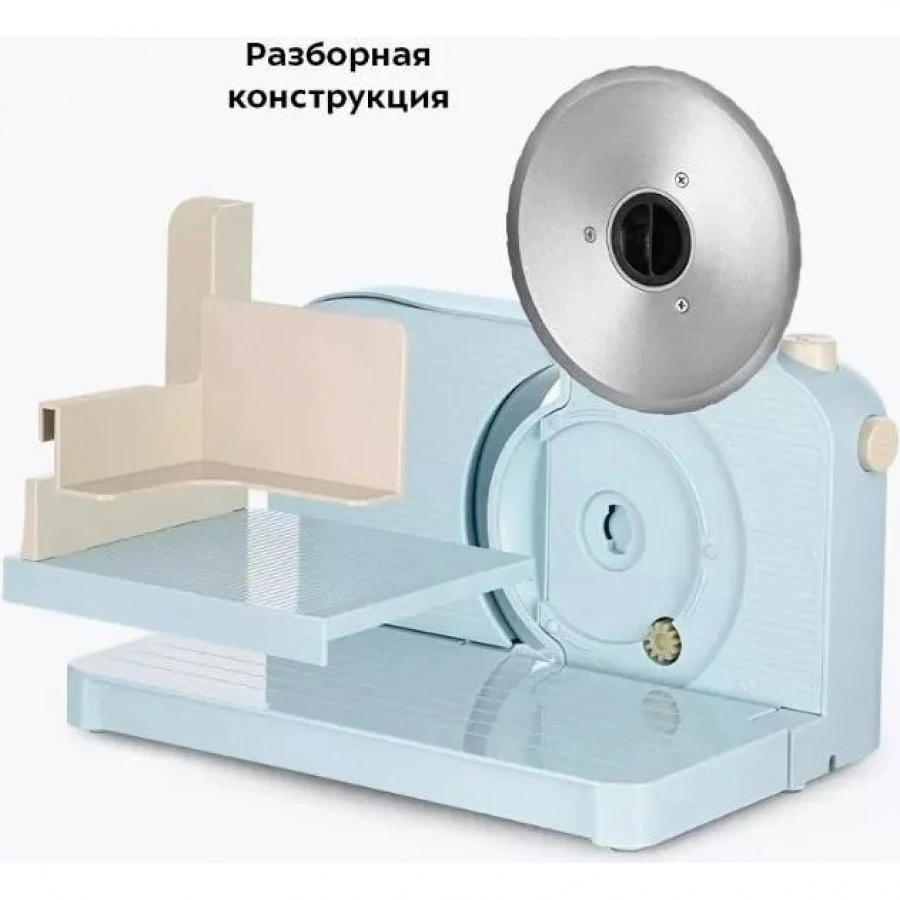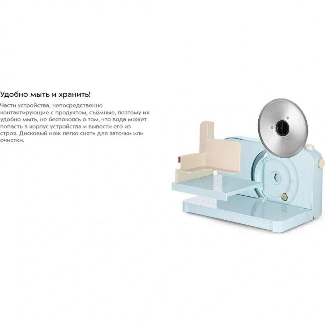 Части устройства, непосредственно контактирующие с продуктом, съёмные, поэтому их удобно мыть, не беспокоясь о том, что вода может попасть в корпус устройства и вывести его из строя. Дисковый нож легко снять для заточки или очистки.