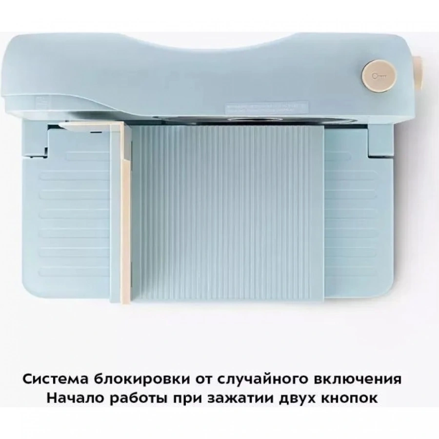 Устройство оснащено системой блокировки от случайного включения. Включить устройство можно, только зажав две кнопки на корпусе одновременно. Кнопка блокировки защищает устройство от случайного начала работы, а вторая кнопка отвечает за включение.