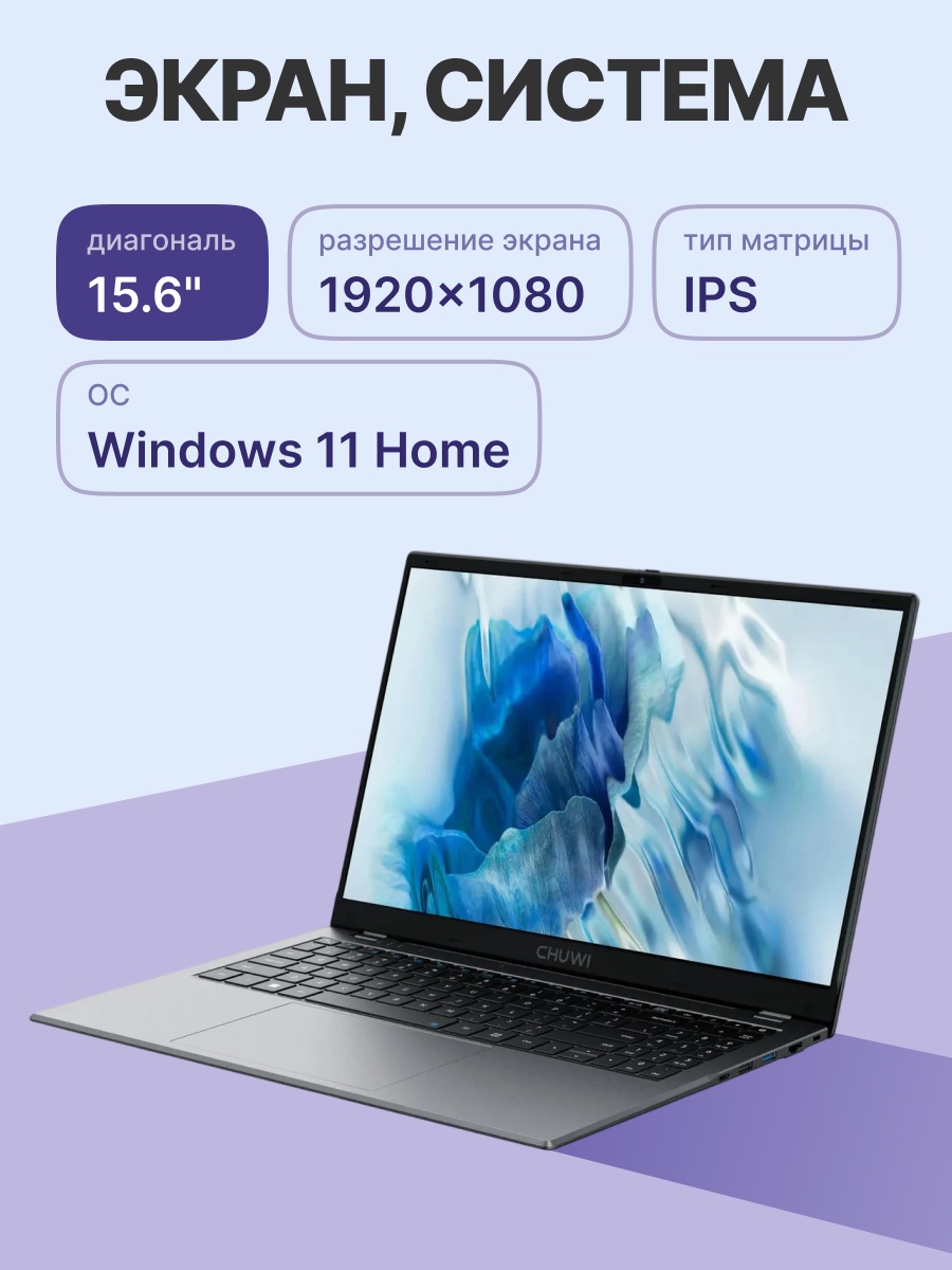 Благодаря своему 15,6-дюймовому экрану, Chuwi Gemibook Plus является обладателем привлекательного и яркого дисплея, который обеспечивает потрясающую точность цвета и детализацию изображения. Этот дисплей также способствует снижению нагрузки на глаза при дительной работе, предоставляя отличное качество изображения и снижая дискомфорт. Gemibook Plus создан для обеспечения комфортного визуального опыта и максимальной продуктивности в течение долгих часов работы.