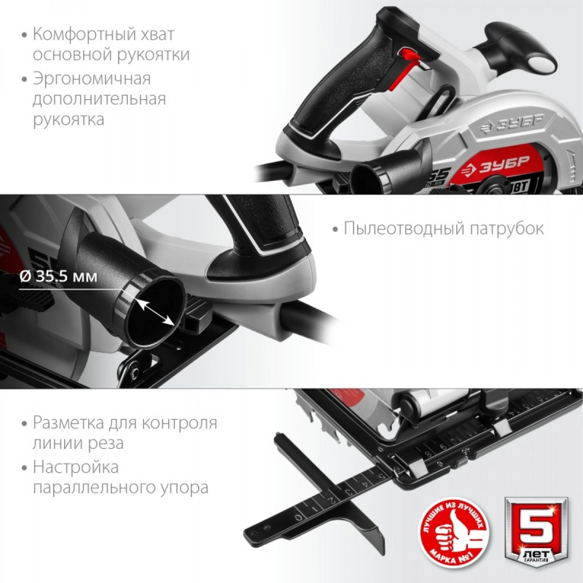 Дисковая пила ЗУБР ПД-55 предназначена для домашних мастеров.Основная и дополнительная рукоятки оснащены мягкими накладками, что обеспечивает комфортный рабочий процесс.Пилите без пыли. В корпусе есть патрубок для подключения пылесоса – это помогает сохранять чистоту в рабочей зоне.