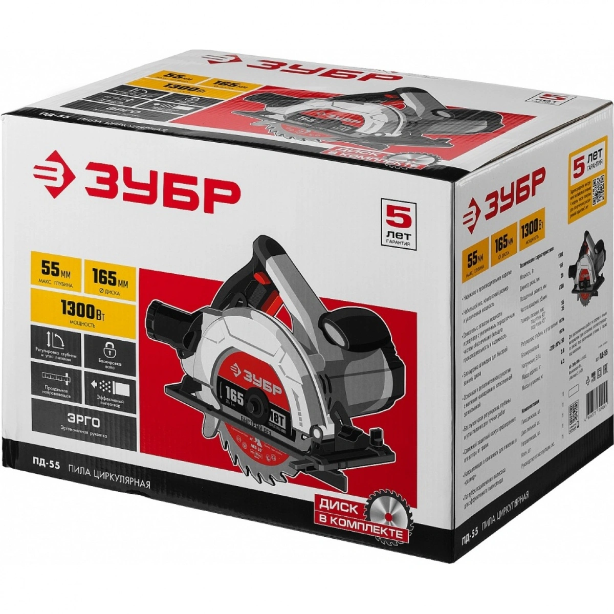 Пила циркулярная(дисковая) ЗУБР d165 мм, 1300Вт, (ПД-55) в Санкт-Петербурге
