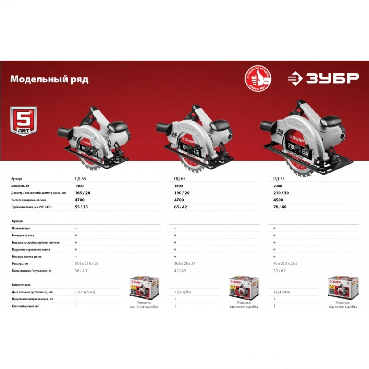 Отзывы о товаре Пила циркулярная(дисковая) ЗУБР d165 мм, 1300Вт, (ПД-55)