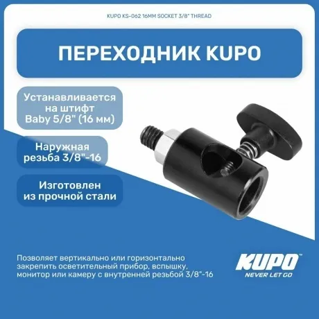Описание товара Переходник KUPO KS-062 16MM SOCKET 3/8" THREAD
