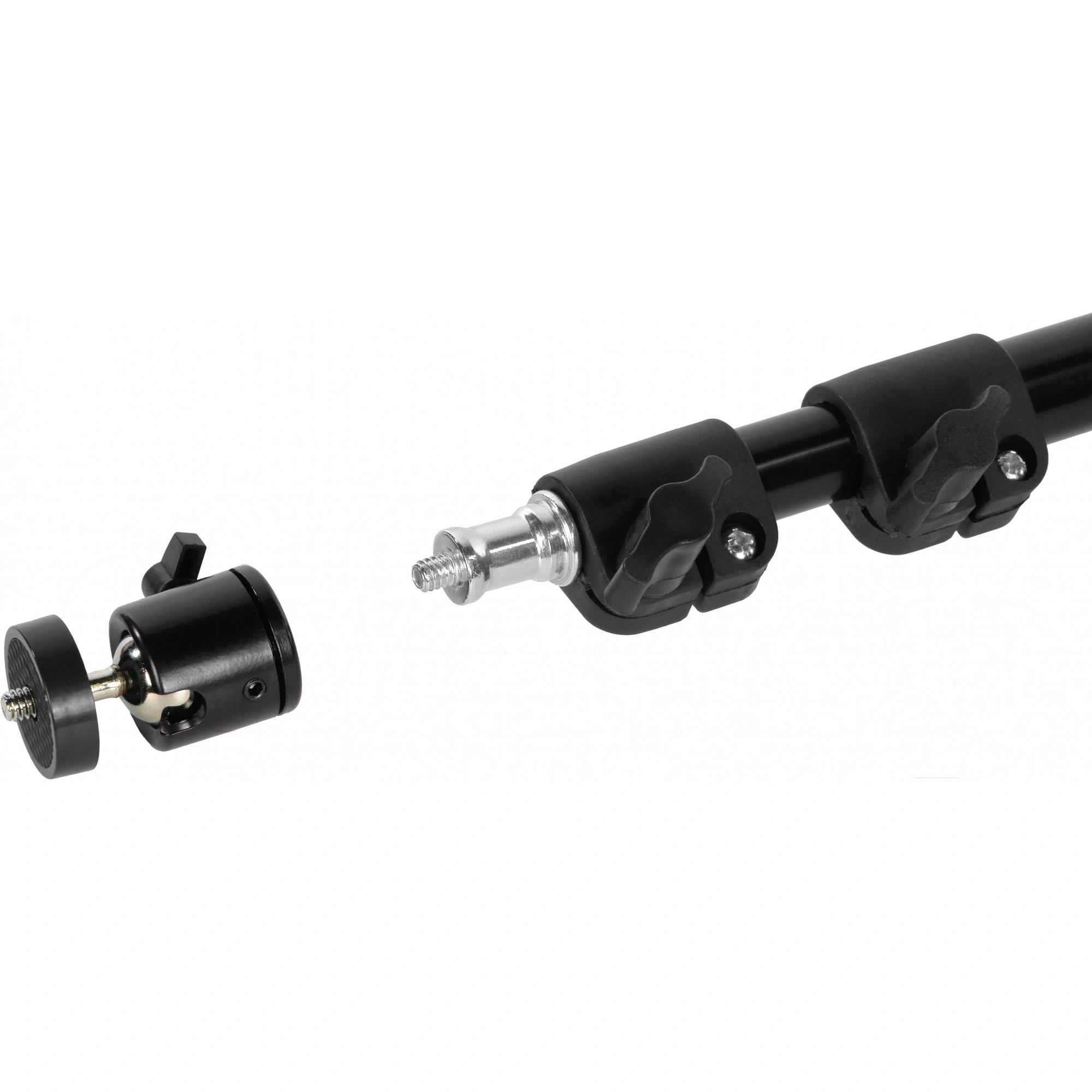 Три телескопические секции стойки диаметром 16, 19 и 22 мм изготавливаются из алюминия, соединяются и фиксируются винтовыми зажимами-хомутами. Ножки также изготовлены из алюминиевой трубы диаметром 16 мм. Благодаря такой конструкции стойка при максимальной высоте 200 см выдерживает вертикальную нагрузку до 2 кг.