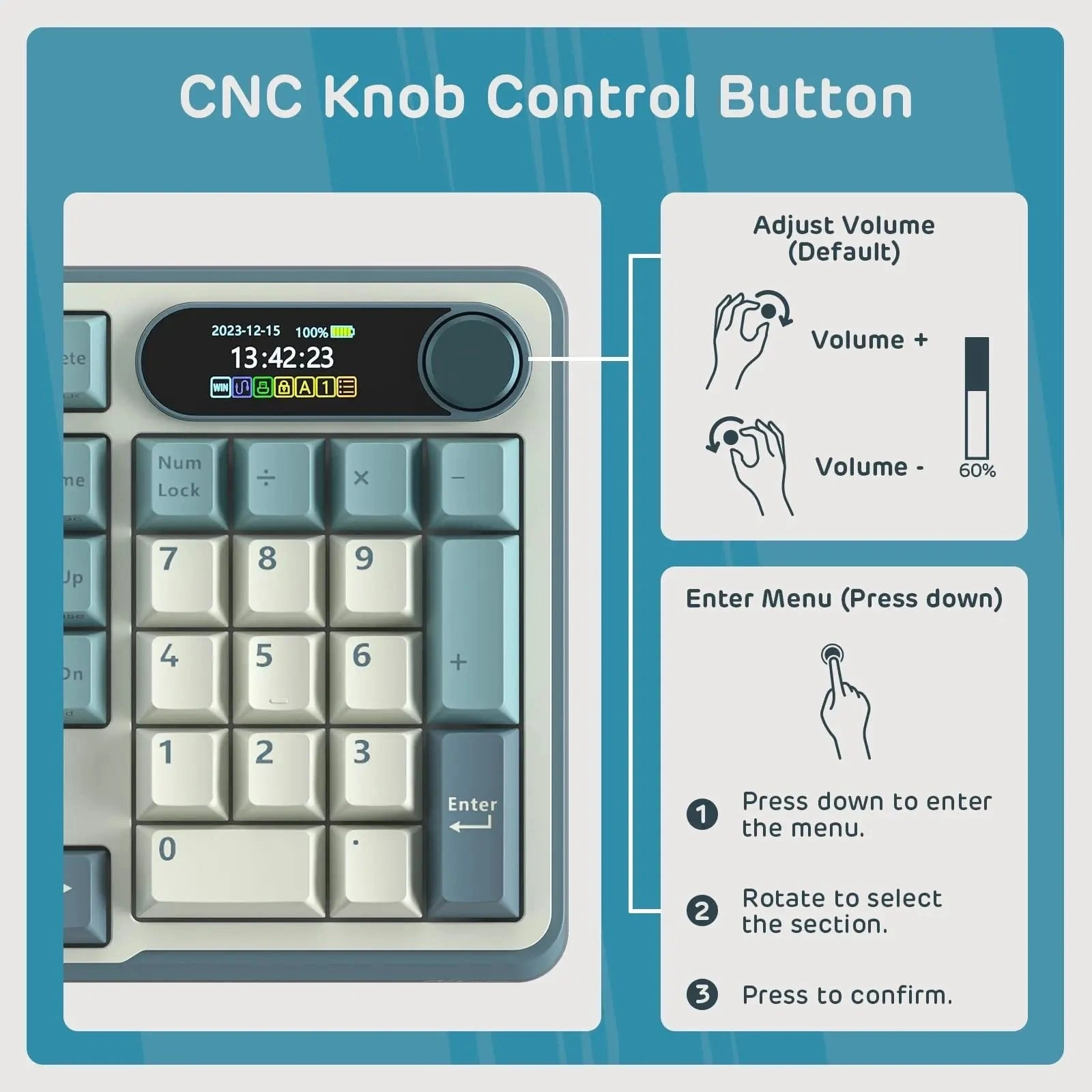 Я заказал клавиатуру из-за того, что за ноутбучной, на подставке стало очень неудобно работать, (да и на ней самой я очень часто промазывал), поэтому решил поискать подходящую клавиатуру. приобрести захотелось подноразмерную с 3-мя разными типами подключения на всякий случай, и всякими финтифлюшками по типу кноба крутилки и экрана, просто потому что прикольно. Это оказалось не так просто, и ближайшее что я нашёл , и что также совмещало хороший дизайн была эта клавиатура. Я заказал с кремовыми свичами. они на нажатие и звуком очень приятны, но они не тихие уж точно. Печатать на ней очень приятно и функционально она меня радует.