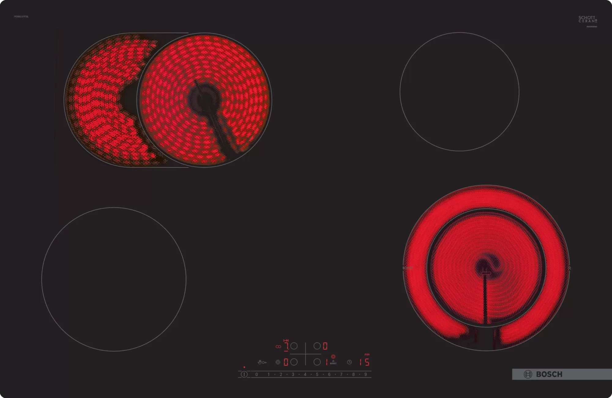 Варочная панель Bosch PKN811FP2E оснащена функцией Restart при незапланированном отключении устройства, ваши настройки восстановятся при следующем включении. Таймер отключает выбранную вами конфорку по истечению времени. Блокировка от детей защитит от случайного нажатия.