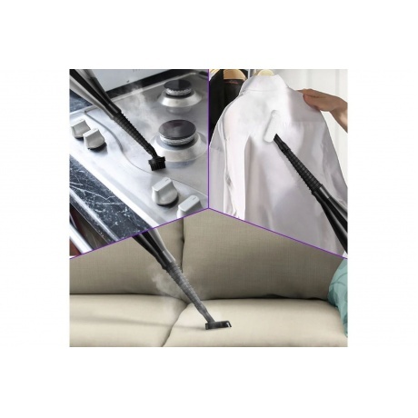Паровая швабра «2 в 1» КТ-3901 — универсальное устройство, которое поможет избавиться от пыли и грязи с помощью мощной струи пара, а также продезинфицировать обрабатываемую поверхность. Конструкция «2 в 1» предусматривает использование ручного модуля швабры с насадками без присоединения к нему удлинительной трубки с рукояткой. Большое количество насадок в комплекте поможет очистить труднодоступные и сильнозагрязненные поверхности. Паровая швабра КТ-3901 оснащена съемным резервуаром для воды ёмкостью 500 мл, что позволяет производить непрерывную уборку в течение 23–28 минут в зависимости от уровня подачи пара. Два уровня подачи пара позволяют настраивать интенсивность выходящего пара. Это очень удобно при очистке разных типов поверхностей с разным уровнем загрязнения. Рамка для ковра облегчает скольжение щётки для пола по ковру и предотвращает сползание тряпки. Паровая швабра обладает функцией вертикальной парковки. На удлинительной трубке предусмотрены держатели для шнура. Паровая швабра КТ-3901 проста в использовании. Уборка с ней будет проходить быстро и легко.