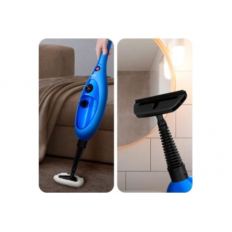 Паровая швабра КТ-3927 — универсальное устройство, которое поможет избавиться от пыли и грязи с помощью мощной струи пара, а также продезинфицирует обрабатываемую поверхность. При помощи специальных насадок из комплекта КТ-3927 очистит напольные покрытия, раковину и плиту на кухне, зеркала, окна и плитку в ванной без каких-либо химических средств, исключительно паром. Устройство оснащено съемным резервуаром для воды емкостью 400 мл, что позволяет производить непрерывную уборку до 15–30 минут в зависимости от интенсивности выходящего пара. Регулятор подачи пара позволяет плавно настраивать интенсивность выходящего пара. Это очень удобно при очистке разных типов поверхностей с разным уровнем загрязнения. Чем сильнее загрязнение, тем больше пара потребуется. Конструкция «2 в 1» предусматривает использование ручного модуля паровой швабры с насадками без присоединения к нему удлинительной трубки с рукояткой. Большое количество насадок в комплекте поможет очистить труднодоступные или сильнозагрязненные поверхности. Скребок и нейлоновые щетки эффективно очищают сложные загрязнения с помощью механического воздействия. Паровая швабра обладает функцией вертикальной парковки и большим углом наклона при уборке, который поможет убрать пространство под мебелью. Паровая швабра КТ-3927 проста в использовании. Уборка с ней будет проходить быстро и легко.