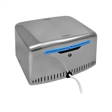 Настенная сушилка для рук Puff-8813 хром Арт:1401.402 одновременно относится к двум типам, к высокоскоростному и антивандальному. Высокоскоростные электросушители для рук используются в местах, где необходимо сократить время пребывания посетителей в зоне высушивания рук — это аэропорты, ж/д вокзалы, стадионы и прочие места с высоким трафиком посетителей общественных мест санитарно-технического назначения. Данная модель выполнена в стиле индустриального дизайна. Отличительной особенностью данной модели является средняя мощность 1250 Вт при внушительной скорости воздушного потока 80 м/с, что способствует быстрому высушиванию рук и небольшому расходу электроэнергии. Время сушки занимает всего 5-7 секунд, так как такой мощный поток воздуха сдувает капли воды с поверхности рук. Температура воздушного потока 40-60 °C. Puff-8813 антивандального типа, а это значит, что электросушилка для рук имеет скрытое крепление и крепится к стене при помощи крепежа и крепежной планки.