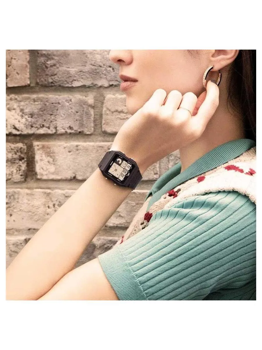 Функциональные унисекс часы. Корпус и ремешок выполнены из биопластика, который изготавливается из возобновляемых органических ресурсов. Циферблат подсвечивается светодиодом. Настраиваемое послесвечение 1.5 или 3 сек. Цвет подсветки: оранжевый. 12-ти и 24-х часовой формат времени. Секундомер с точностью показаний 1/100 сек. и временем измерения 24 часа, сплит-хронограф. Таймер обратного отсчета от 1 сек. до 24 часов. Мировое время – 48 городов (31 часовой пояс), всемирное координированное время (UTC). Функция включения/отключения летнего времени. Переключение между домашним и мировым временем. Режим «Мульти Тайм» - показания текущего времени в 4-х зафиксированных городах. 5 будильников, ежечасный сигнал. Функция включения/отключения звука. Питание от батарейки CR1616, рассчитанной на 3 года работы без замены. Стальная задняя крышка крепится на 4-х винтах. Ремешок с классической застежкой, обхват запястья от 125 до 200 мм. Вес часов 23 грамма.