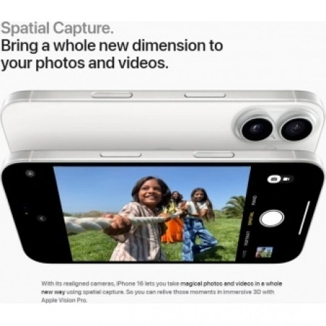 В Apple iPhone 16 установлен экран OLED Super Retina XDR с диагональю 6.1 дюйма с разрешением 2556х1179 пикселей. Дисплей выводит яркую картинку и видео без задержек и мерцаний, обеспечивает комфорт просмотра контента под углом.