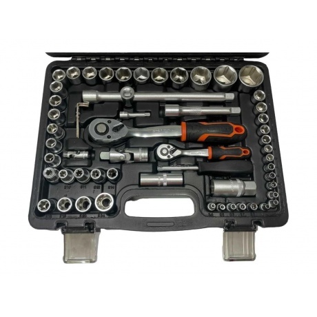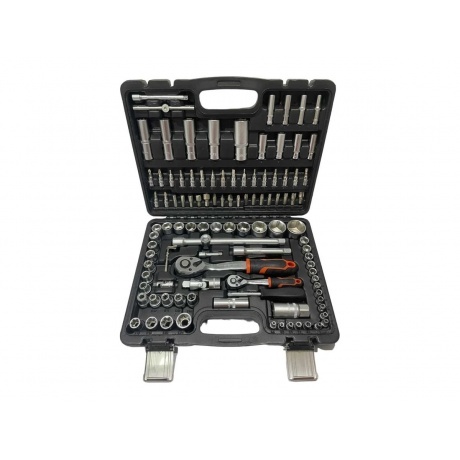 Набор инструментов представляет собой многофункциональный комплект, который предназначен для ремонта и обслуживания автомобиля. Рабочие части набора выполнены из хромованадиевой стали, которая отличается долговечностью и износостойкостью. Трещотки оснащены большим количеством зубьев. Инструмент поставляется в кейсе из экологичного пластика.Тип крепления свечи в свечной головке - уплотнительная резинка.