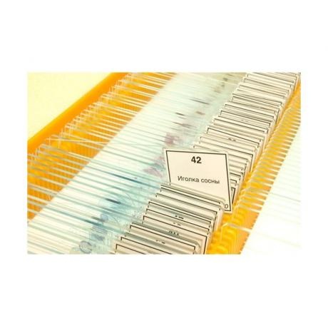 В комплект входят 80 готовых микропрепаратов с образцами тканей растений, животных и человека и часто встречающихся веществ. Также в набор входят 12 чистых предметных и 20 покровных стекол.
